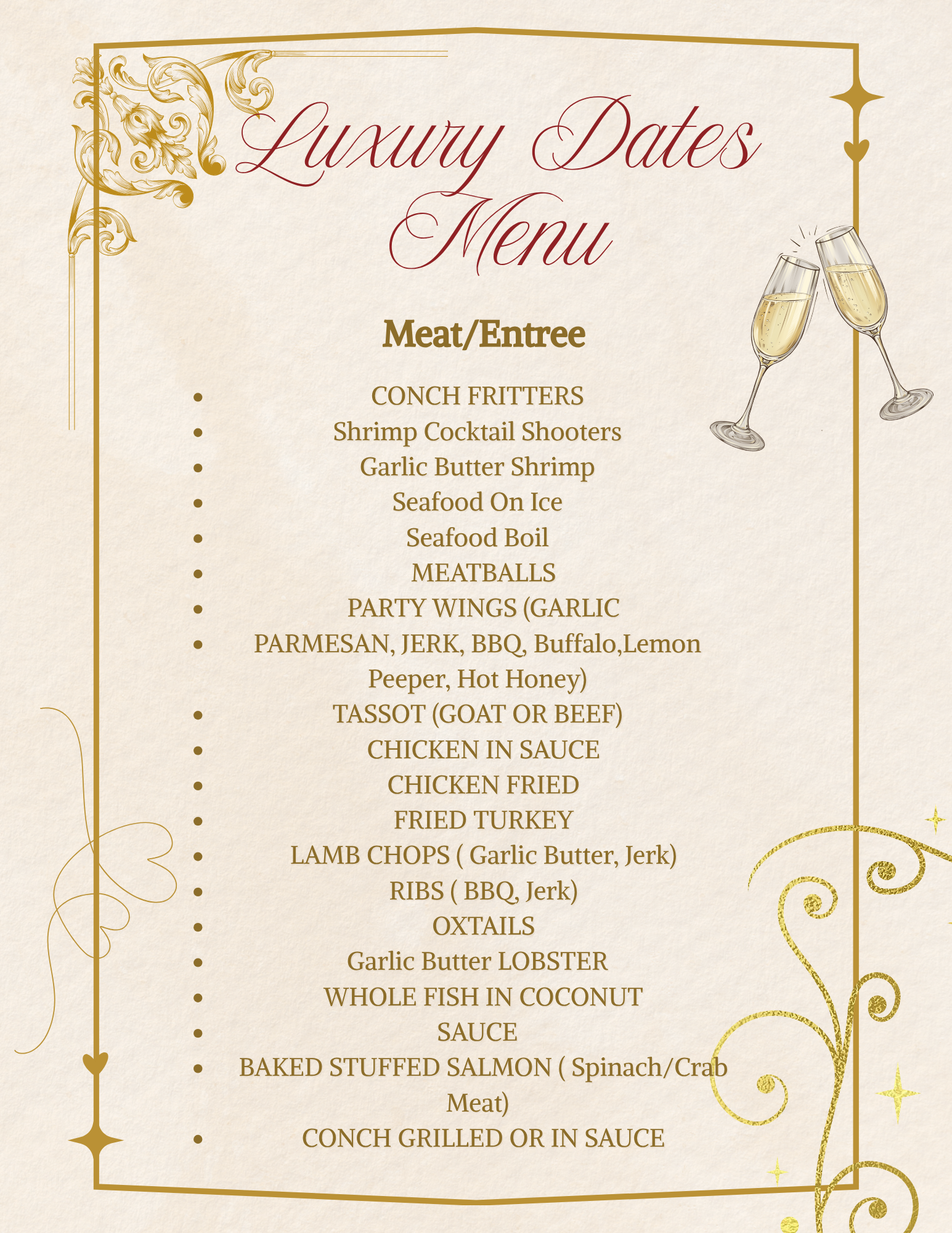 We are delighted that you're considering LuxuryDates by Myrdou’s Kitchen LLC to elevate your upcoming celebration. To help us design a seamless, unforgettable experience tailored to your vision, please fill out our “Contact Form “provide the following details about your upcoming celebration: